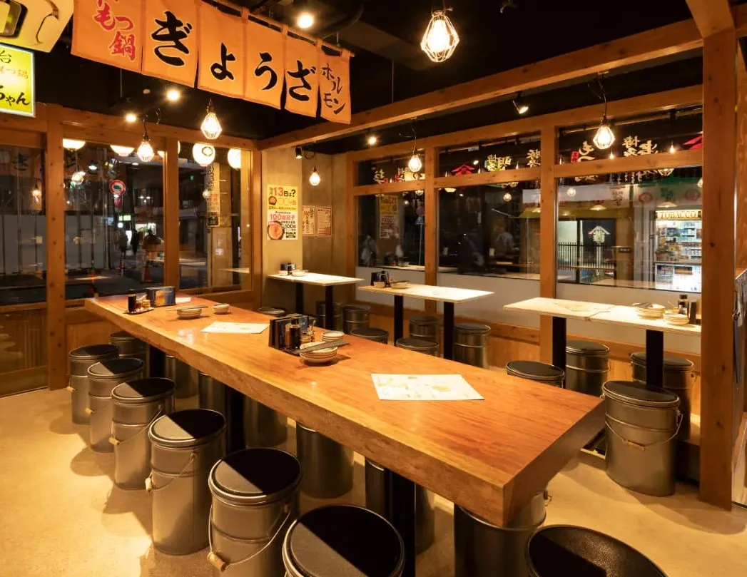 屋台のようなカウンター席から、グループで囲めるテーブル席、店舗によっては掘りごたつ式の座敷など、人数に合わせたレイアウトが可能。