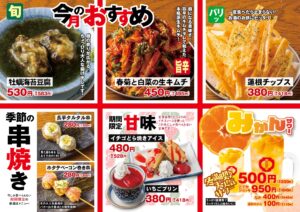 旬の食材を使った逸品から、今だけの限定メニューまで勢ぞろい。